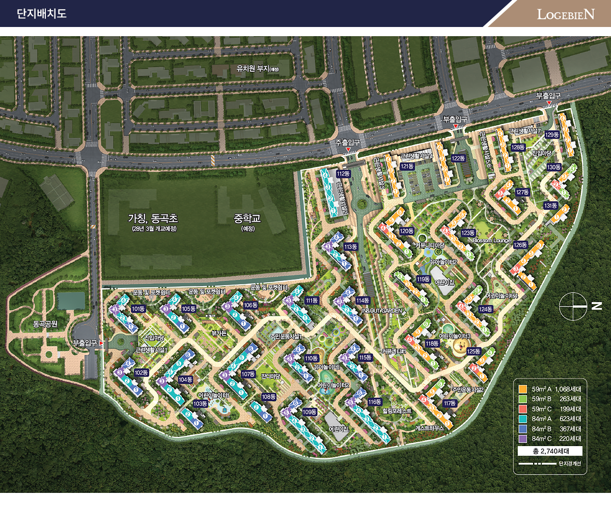 101동 85세대, 102동 85세대 APT A, B, C, D, E, F type 총 170세대